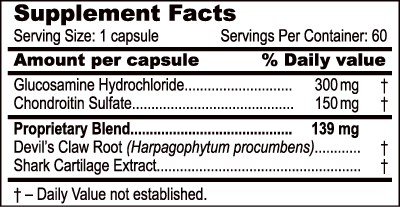 Devil’s claw (Harpagophytum procumbens) root powder, shark cartilage extrac