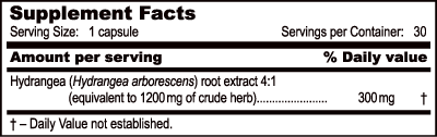 Hydrangea (Hydrangea arborescens) root extract 4:1 (equivalent to 1200 mg of crude herb) – 300 mg.