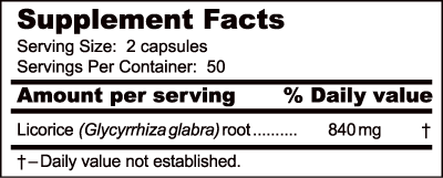 Licorice (Glycyrrhiza glabra) root – 420.0 mg.