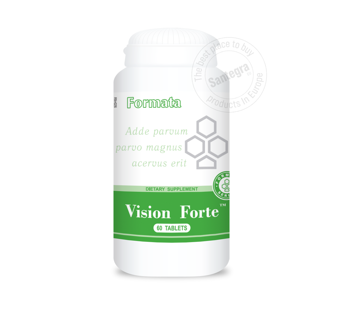 Vitamin C in Vision Forte is present in five different forms: ascorbic acid, calcium ascorbate, ascorbyl palmitate, acerola fruit extract, rose hips powder, which greatly increases its bioavailability. Vitamin C improves blood circulation in the eye, increases blood vessels’ elasticity, prevents retinal hemorrhaging and cataract, is an antioxidants, protects lens, slow down destructive changes.